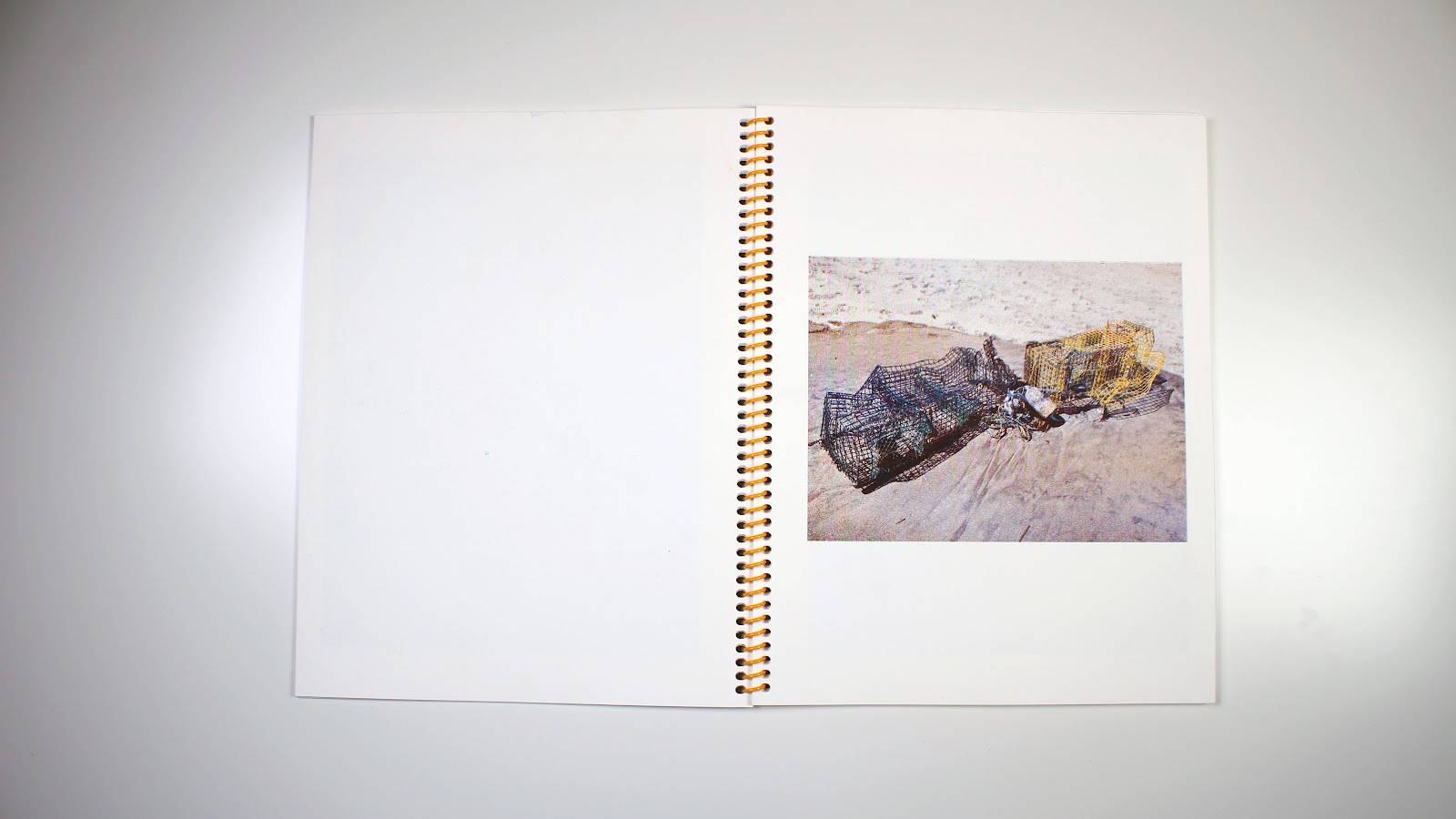 Here are images of Something to Notice (2021), a book of photographs of lobster trap detritus taken on Morse Mountain Preserve beach in Maine by Devin Shepherd and Risograph-printed by Juliette Walker at the University of Arkansas.